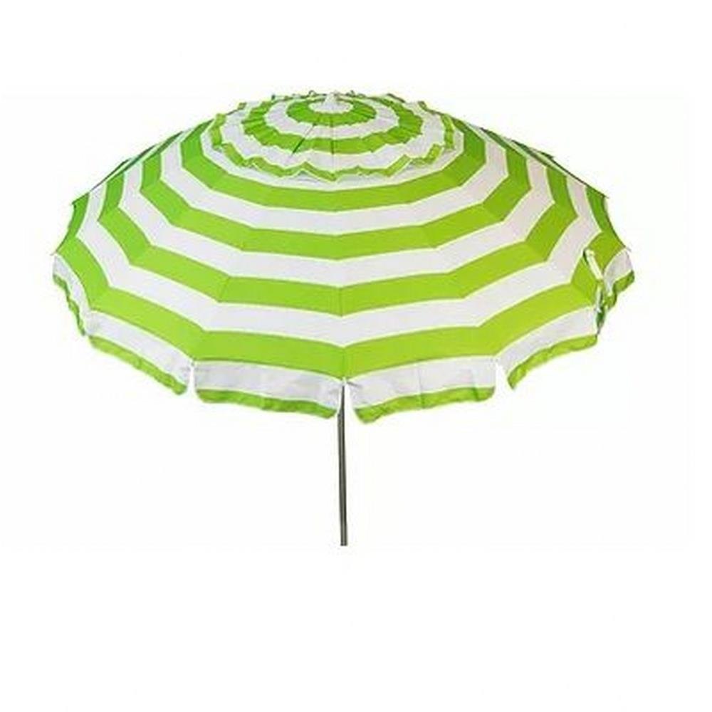 The DestinationGear Deluxe Umbrella comes with a beach pole, patio pole and matching carry bag! With a fun and colorful stripe pattern this umbrella instantly makes any outdoor activity feel like a party, with its fun and colorful stripe design. Also, it works great next to the pool- just stick the pole in the grass! This 8 foot diameter umbrella will keep you and your friends and family shaded from the suns harmful UV rays (UPF 50+) as well as any uncooperative weather. This umbrella offers 16 sturdy fiberglass ribs and a sturdy aluminum pole. An easy push up, standard style mechanism allows anyone to put up or take down this lightweight umbrella. The umbrella also has a wind vent and the desirable tilt feature, to protect you from the sun as it moves throughout the day. An included matching stowaway bag makes transporting this umbrella to and from as simple as can be.Includes both Patio and Beach Lower PolesSturdy 16 Fiberglass Ribs on an Aluminum frameEasy to Push Up and Take Down Frame with Push Button TiltIncludes Storage Bag for easy hauling.