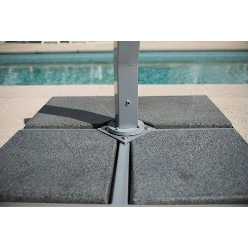 Attractive granite center weight base system. Features 4 66lb granite slabs and 1 22lb Base Frame. Base frame is e-coated and then powder coated to ensure years of use.This base is compatible with the Sirocco Side Wind and Santa Ana Side Wind (Cantilever) Umbrellas.