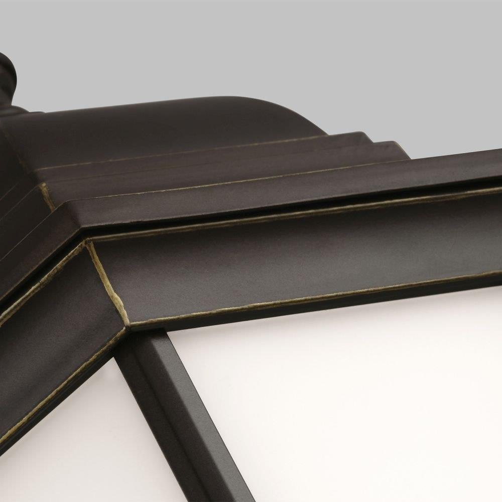 The Sevier one light outdoor wall fixture in antique bronze creates a warm and inviting welcome presentation for your home's exterior. The Sevier outdoor collection by brings timeless design to new heights with its traditional design details found in classic outdoor fixtures as well as an open bottom for easy maintenance. Made of durable cast aluminum, a multi-level crown, top finial and stepped-edge back plate complete the traditional look. Offered in Antique Bronze or Black finish, both with Clear glass, the collection includes a one-light outdoor pendant, one-light post lantern, a large one-light up light outdoor wall lantern, a small one-light up light outdoor wall lantern, a small one-light downlight outdoor wall lantern, and a large one-light downlight outdoor wall lantern.Product Features and Benefits