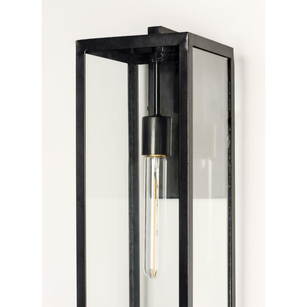 An elongated rectangular shaped design that is both minimalist and industrial. Die cast frames of Dark Bronze support Clear glass panels that provide an unobstructed view of the lantern's interior. Customize with your choice of lamps from vintage to tubular.