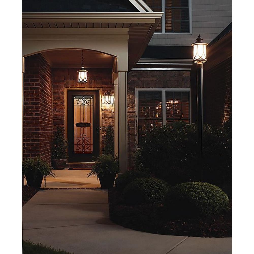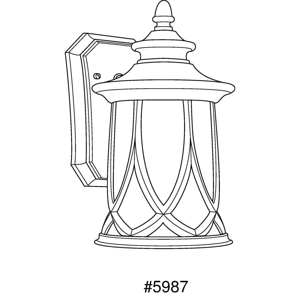 Tudor styling meets prairie design. Gradual umber tint on glass shades. A woven cast pattern encases a casual profile. Large scale cast aluminum lantern feature a durable powder coat finish. One-light small wall lantern.