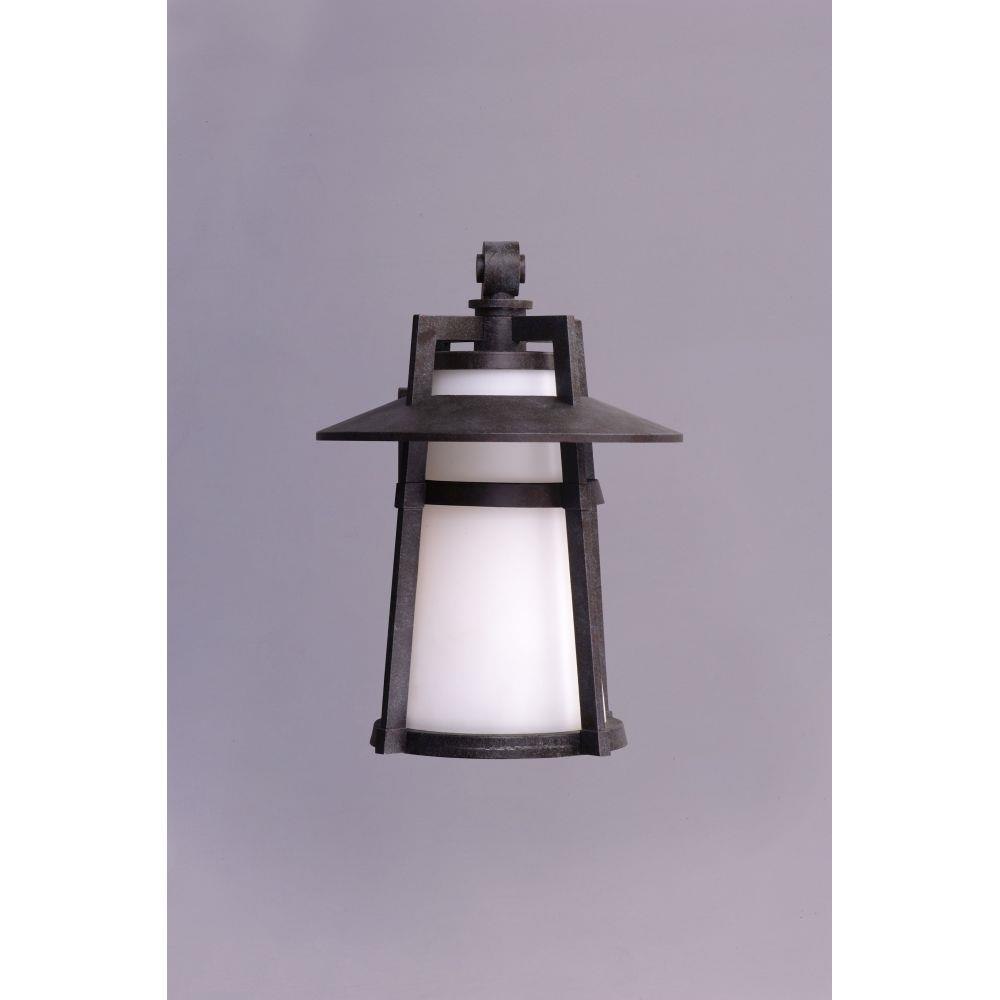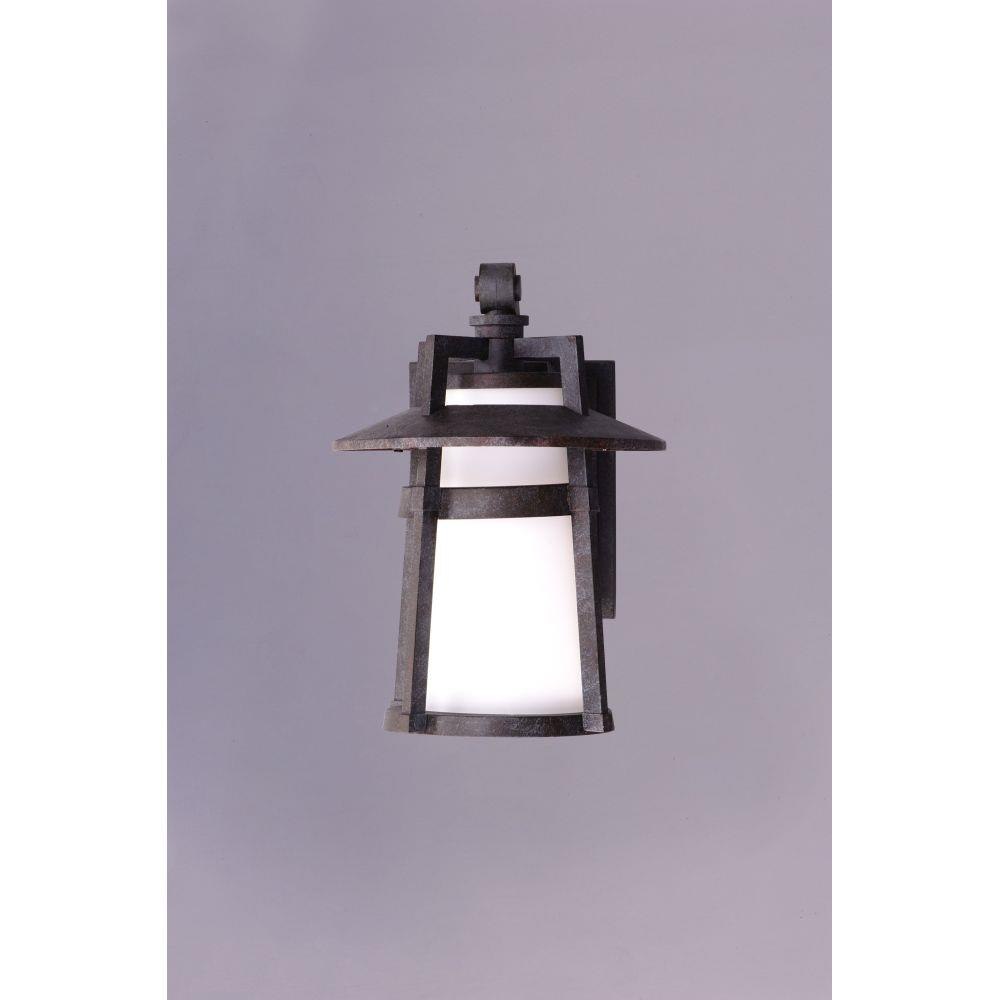 Classic, contemporary style of Die Cast aluminum finished in Adobe features an integral hood and Satin White conical shade, which help cast light in a downward direction.