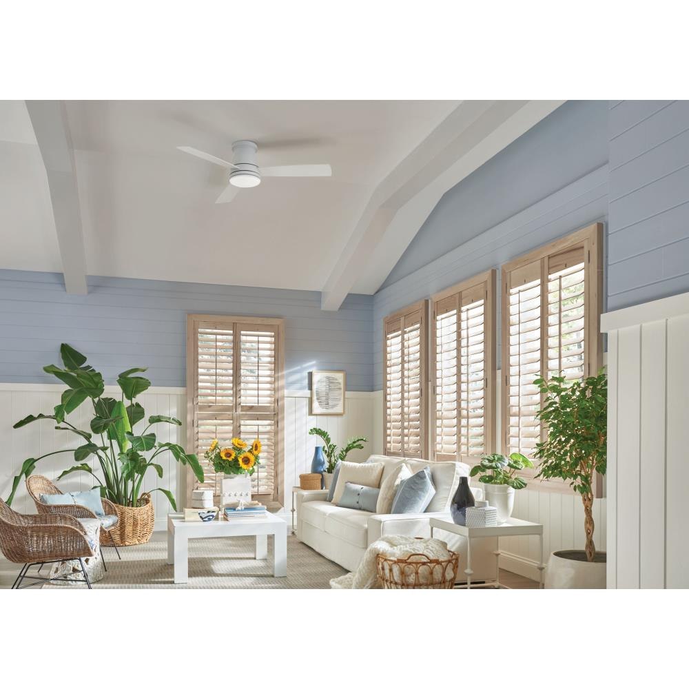 Trey features a sleek flush mount design that packs a powerful punch. Its transitional style comes equipped with robust blades that seamlessly pair performance and precision. Trey is offered in versatile Brushed Nickel, Metallic Matte Bronze and Matte White finish options, and its integrated LED and DC motor technology deliver excellent energy efficiency. A timeless etched opal glass completes the look for a refined appearance. Trey is so versatile, it can be used for both indoor and outdoor spaces.Features and Benefits: