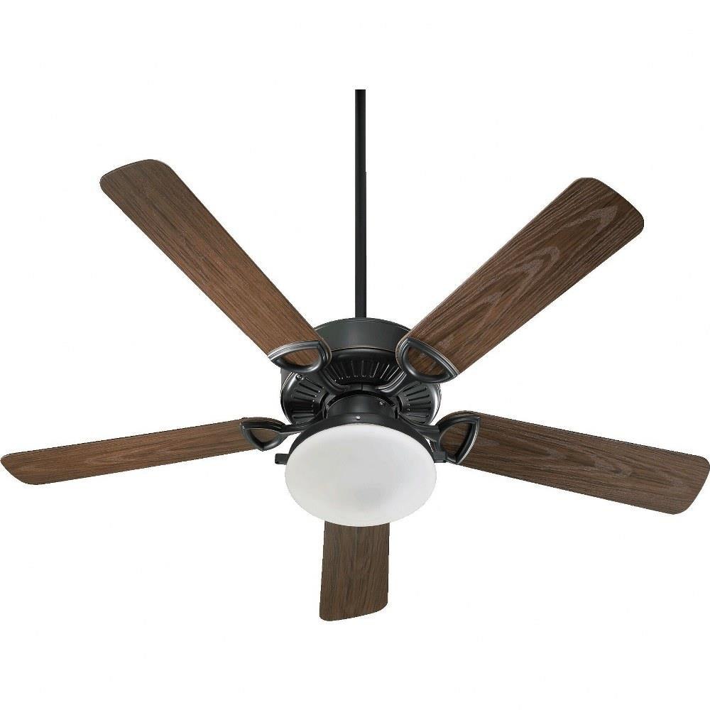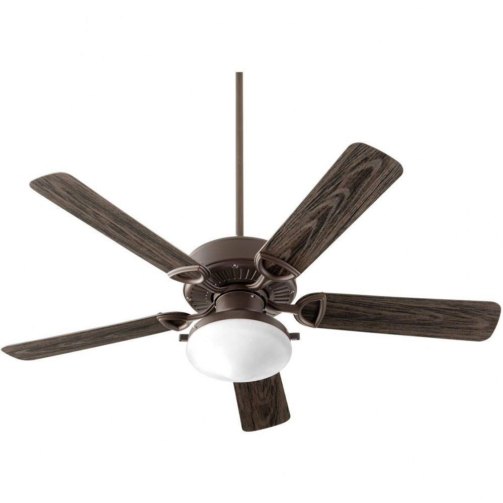 The Estate fan integrates two incandescent bulbs housed within a satin opal glass shade, providing warm, ambient lighting to enhance your outdoor setting. Its five blades contribute to a classic yet transitional aesthetic, finished in white to seamlessly blend with both traditional and modern patio designs. The fan is wet-rated, making it suitable for outdoor use where exposure to moisture is a consideration.